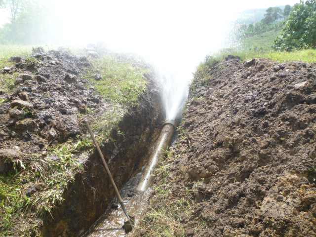 Fotografías del daño presentado el día de ayer 31 de Marzo de 2016, en el la red de aducción principal del acueducto, en el sector de Chamisito, daño que se ocasionó por el desempalme en una de las uniones.